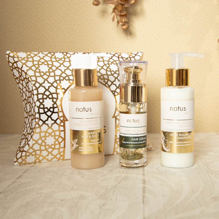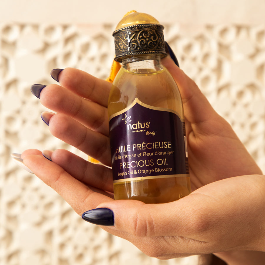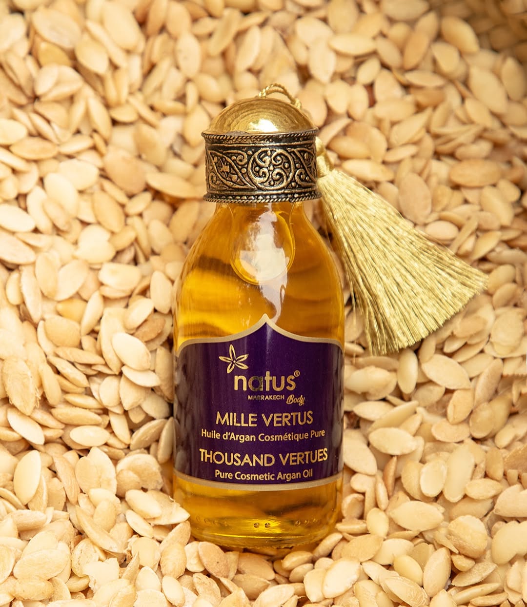 Natus Marrakech propose une large gamme de soins naturels formulés à partir d'un ingrédient phare : l'Huile d'Argan, aussi appelée huile précieuse. Riche en antioxydants, vitamines, minéraux et acides gras essentiels, elle offre des bienfaits exceptionnels : hydratation intense, nutrition profonde, revitalisation et action anti-âge. Intégrer les cosmétiques Natus Marrakech à votre routine quotidienne, c'est choisir des soins naturels de qualité pour une peau éclatante et des cheveux sublimés.